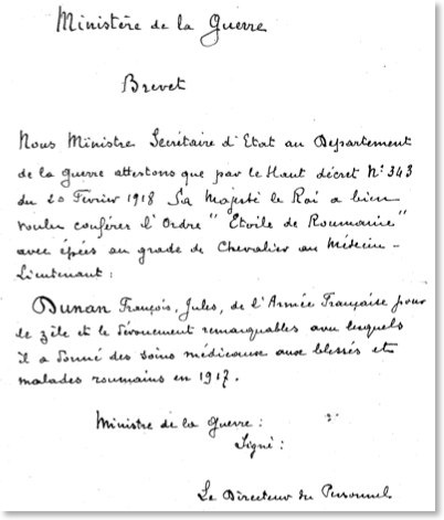 en Roumanie. A la suite de cette mission qui s'achèvera fin février 1918, il se verra